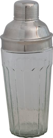 - This modern take on a classically designed cocktail shaker features an embossed glass base and stainless steel lid