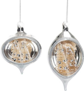 Enhance your holiday decor with the Transpac Glass Sisal Tree Ornament Set of 2 This beautiful set features two stunning glass sisal trees in a shimmering silver finish perfect for adding a touch of elegance to your Christmas home decorations Each tree measures 6.13 inches in height 3.25 inches in length and 2.5 inches in width making them ideal for displaying on mantels tabletops or as part of a festive centerpiece The multicolor design adds a vibrant touch to your seasonal decor Crafted from high quality glass these ornaments are designed for indoor use and can be easily maintained with a simple spot or wipe clean Care for your holiday decorations with this exquisite set that brings joy and style to your Christmas celebrations