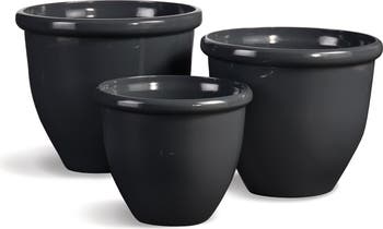 - Each Piece Measures: 19.5 x 19.5 x 16.5 - 17.25 x 17.25 x 15 - 14.25 x 14.25 x 11.75 Charcoal Gray Made of Ceramic Drill guides on bottom allow for easy drilling. Ensure drainage to avoid cracks or damage. Protect from hard freeze.