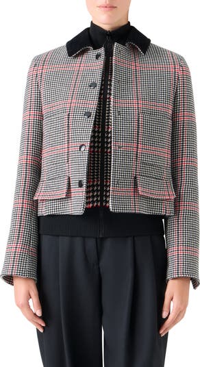 Glen plaid lends sartorial polish to this virgin-wool jacket tailored in a straight fit eased with an inverted back pleat and topped with a corduroy collar.