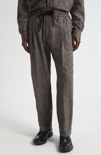 Cut for movement yet grounded in tradition, these runway-featured check pants arrive in plush wool-and-alpaca-blend fabric with generous loft and a drape that glides through the day. Neat pleats add dimension and a drawstring waist brings sport-minded adjustability.