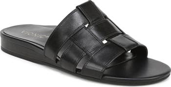 This balanced slide perched on a slight wedge heel features interior goring at the vamp to keep the ride comfortable all day long. Its Vio Motion footbed with contoured arch support helps absorb shock and gives the slide a deeper heel cup profile to ensure stability and flexibility.