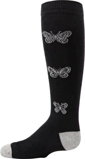 Change into something beautiful - like our Glitter Butterfly Knee High Socks. Slip into a pair for legs that shine, with adorable butterflies embroidered with metallic yarn that glitters with every step. A cotton blend ensures all day comfort and style that complements any outfit with a touch of springtime renewal