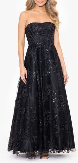 Glitter Mesh Corset Strapless A-Line Gown