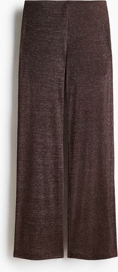 Fitted trousers in sheer, ribbed jersey containing glittery threads. High, elasticated waist and wide legs. Interlock jersey lining at the top.