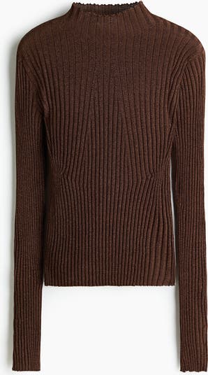 Fitted, long-sleeved top in a rib-knit viscose blend containing glittery threads. Features a turtle neck and fully-fashioned sections.