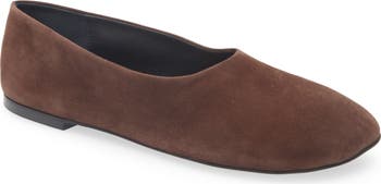 Signature minimalism defines a goatskin-suede flat designed in a sleek sock-like silhouette.