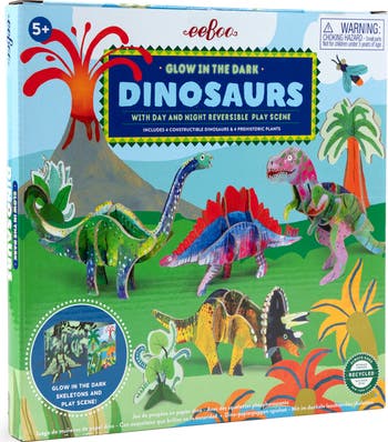 Includes: Four 3D glow-in-the-dark dinosaurs, four 3D plants and a two-sided play scene.