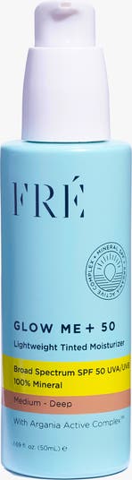 - What it is: Breakthrough ultra‑light tinted mineral SPF 50 moisturizer with FRÉ’s patent Argania Active Complex™ and non‑nano zinc oxide. Who it's for: Ideal for all skin types, including sensitive skin. Medium - deep skin tones. What it does: Delivers 100% non‑nano zinc oxide mineral UV defense. Infused with FRÉ’s Argania Active Complex™ (antioxidant blend that slows skin aging caused by sun damage) to protect, repair, and restore hydration. Plus, vitamin B5 and tocopherol lock in moisture and fight free radicals for smoother, healthier-looking skin. How to use: Apply liberally as the last step in your morning skincare routine, 15 minutes before sun exposure. Reapply after 40 minutes of swimming or sweating, or at least every 2 hours. Highlights: Water‑Resistant Dermatologist & Ophthalmologist tested Reef-Safe, Vegan & Cruelty‑Free Paraben‑, sulfate‑, phthalate‑free Non‑Comedogenic Hypoallergenic Free from synthetic fragrance Sustainable packaging EWG 1‑3 ranked ingredients