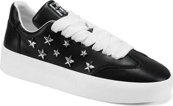Polished stars play up the contemporary appeal of a sporty leather sneaker complete with a lightly cushioned footbed.