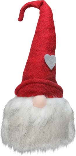 Gnomes are best known for guarding earthly treasures, providing good luck and are perfect for protecting your Christmas goodies. Add a pop of color, a ton of cuteness, and luck to your holiday decor. Just perfect for by this Christmas tree, tabletops, mantles, and sofas. Product Features: Gnome with bendable felt hat Hat has wire inside for easy posability Red hat has a grey heart accent Gnome has signature faux fur white beard Weighted bottom keeps gnome steady Recommended for indoor use only Dimensions: 21"H x 9"W x 9"D Material(s): felt/faux fur/wire