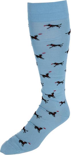Add a dose of fun-loving charm to your day with the Go Fetch dress sock. Featuring an energetic pup chasing a flying frisbee, this over-the-calf sock is a perfect pic for dog lovers and those who appreciate a little whimsy in their wardrobe. Knit from ultra-soft Pima cotton for breathable comfort, it is finished with reinforced heel and toe construction and stay-put cuff that keeps pace with your every move. Fits shoe sizes 8-12.