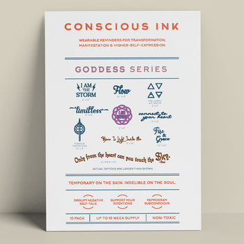 No two goddesses are alike. Our Goddess Variety 10-Pack is fierce! (Contains 10 different Manifestation Temporary Tattoos. Individually cut. Ready to apply in seconds!)