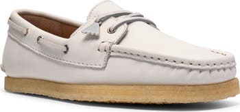 Leather laces bring nautical-inspired finish to a stylish leather loafer with moccasin construction and a flexible crepe sole.
