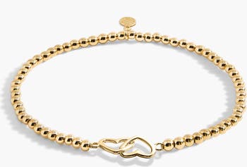 The A Little 'Beautiful Friend' Bracelet In Gold-Tone Plating from A Littles & Co. features an enchanting design that shines with every movement. Threaded with gold-tone plated beads and an interlinked heart charm, this sweet style comes wrapped around a stylized card, framed with a heartfelt poem. It's the perfect piece for your wonderful friend!