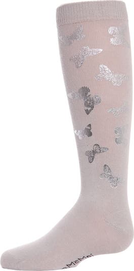 Wish you could float off and fly away? Let these butterflies do the talking. Gold foil butterflies float up from ankle to cuff, wistfully traveling up to your knees and flying off when you have to keep your feet firmly planted right here on Earth.