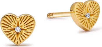 Let these Gold Heart Studs add a loveable glint of glamour to any outfit. Dainty yet bold, these gold earrings feature sparkling white sapphires for an extra flourish.