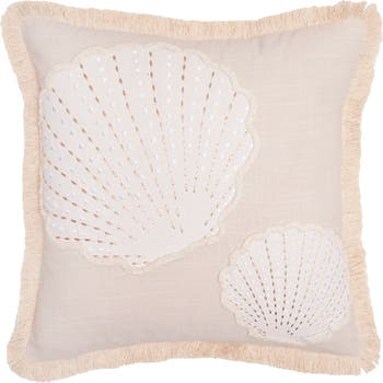 Showcasing delicate applique and embroidery in soft, sandy-hues, the Golden Coast Scallop Shells Pillow is a stunning accent piece that complements any beach-inspired decor. The fringed edges add subtle texture, perfect for creating a peaceful and inviting space that reflects the beauty of the coast. Mix it with our coordinating stockings for a complete look.