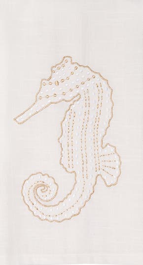 Dive into the beauty of the ocean with the Gold Coast Seahorse Kitchen Towel. This charming towel showcases delicate gold outlined embroidery of a whimsical seahorse, bringing a delightful marine motif to any kitchen. Crafted from soft, absorbent fabric, it’s perfect for everyday use or as a decorative piece that adds a splash of coastal charm and elegance.
