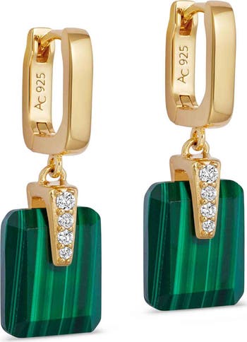 Gold Deco Malachite Drop Huggies Earrings