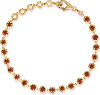Channel a little modern luxury with this Art Deco-inspired bracelet. Featuring delicate hexagonal-cut red garnet stones set in 18ct gold vermeil. Hidden hexagonal adjusters ensure the perfect fit. This piece looks great stacked with your other favourite styles.