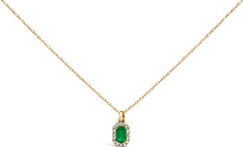 Gold Emerald and Diamond Accent Halo Octagonal Pendant Necklace
