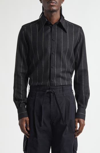 Tailored in a tapered fit from alpaca-forward pinstriped flannel, this runway-featured shirt offers refined style perfect for semiformal and formal occasions.