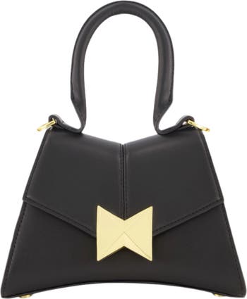 This petite handbag features striking 24k gold hardware and an angular design. Made with luxe leather and zinc alloy fittings, it offers a spacious interior and exterior pockets for organized essentials.