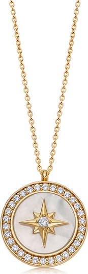 Astley Clarke Gold Large Polaris Mother of Pearl Locket Necklace, Main, color, Polaris