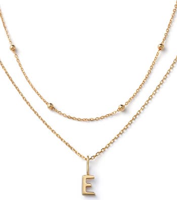 This solid gold necklace set features two chains and a letter charm, all crafted with 10K Gold, making it the perfect personalized everyday look