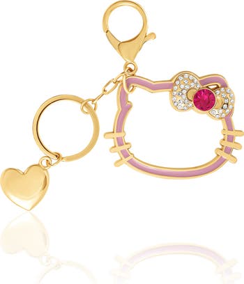 Show off your Sanrio style with this Hello Kitty keychain featuring a gold-tone outline, a red bow, and dangling heart charm.