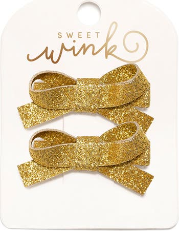 Every little girl needs the perfect hair clip to complete her look! The Gold Sparkle Bow Clip Set is the perfect hair accessory for adding a touch of sparkle to any outfit.
