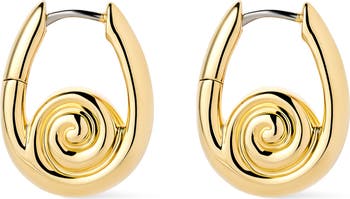 These gold statement earrings are so much more than just your average hoops. Water-resistant and tarnish-proof, these 14k gold-plated earrings feature a bold seashell-inspired design and a perfectly polished finish. For a truly statement-making stack, we’d recommend pairing these earrings with our medium Giulia hoops.