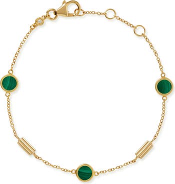 Our radiant Gold Stilla bracelet features three vibrant malachites, a stone of boldness and balance to bring powerful energy to your everyday look.