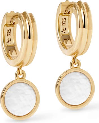 Our Gold Stilla Mother of Pearl Huggies are a luminous everyday essential, made with creativity-enhancing and energy-balancing Mother of Pearl.