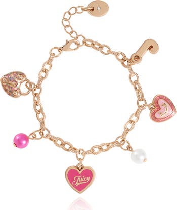 Juicy Couture Kids Gold-Tone Charm Bracelet with Heart Pendants, Main, color, Gold, Pink