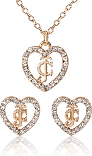 Sweeten your accessories game with this charming Juicy Couture jewelry set. Featuring a sparkling pavé heart pendant necklace and coordinating heart stud earrings, this gold-tone duo adds a romantic, polished touch to any outfit. Ideal for gifting or completing your everyday look with a hint of glam.