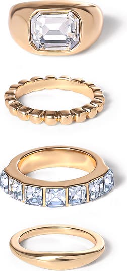 A versatile 4-piece ring set featuring smooth and textured finishes, perfect for stacking.