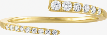 This wrap ring combines the timeless allure of gold over sterling silver with the captivating sparkle of graduating cubic zirconia stones. This adjustable piece elegantly wraps around the finger, offering a custom fit and a continuous gleam that complements both day and evening wear.