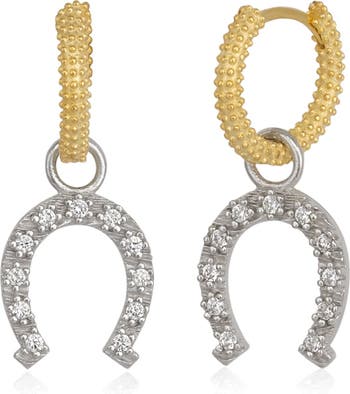 Let’s add a touch of luck and a bit of dazzle with these delightful Horseshoe Earrings. These earrings are handmade in a 925 sterling silver that is high-quality, lightweight, durable, and comfortable to wear. It beautifully highlights a beaded mini hoop and a dangling horseshoe embellished with shimmering zirconias, giving you a charismatic look. It has a hinged-back lock for a comfortable and secure wearing experience. These gorgeous earrings come in luxe gold and silver tones to accent the other sterling silver jewellery pieces. You can style it solo for an elegant look or stack it with your other dainty studs for a sleek look.