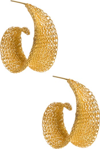 Gold Weave Curled Hoops