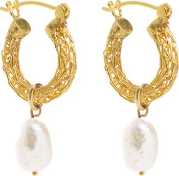 Gold Weave Mini Hoops with Baroque Pearl