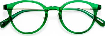 A mixed-media design defines lightweight round reading glasses fitted with adjustable nose pads for customized comfort. They have CR-39 lenses offering superior clarity and shatterproof durability.