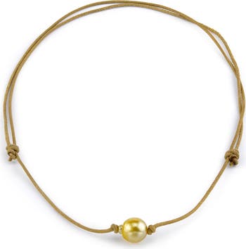 Golden South Sea baroque pearls on an adjustable leather rope create a versatile, modern necklace with bold, natural elegance.