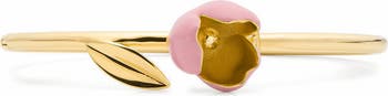 Add a summertime touch to your look with this brightly polished bracelet adorned with a glossy flower charm and golden leaf.