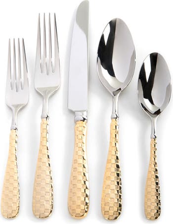Elevate your table landscape with this elegant flatware set featuring 24-karat gold-plated handles embossed with the maison's signature checkerboard motif.