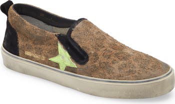 The brand takes its signature scuffed-up style further downtown with this slip-on suede sneaker featuring a faint leopard print and a neon star.