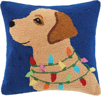 - Add festive charm to your living room, sofa, or bedroom with this playful accent pillow featuring a golden lab with Christmas light bulbs. Perfect for seasonal décor, it brings warmth and joy to your holiday home atmosphere.