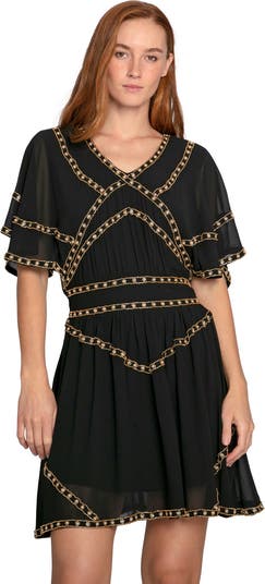 Golden Mark Beaded Trim Mini Dress