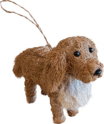Handwoven by artisans from natural coconut coir, this whimsical ornament brings rustic paw-sonality to any dog lover's decor.